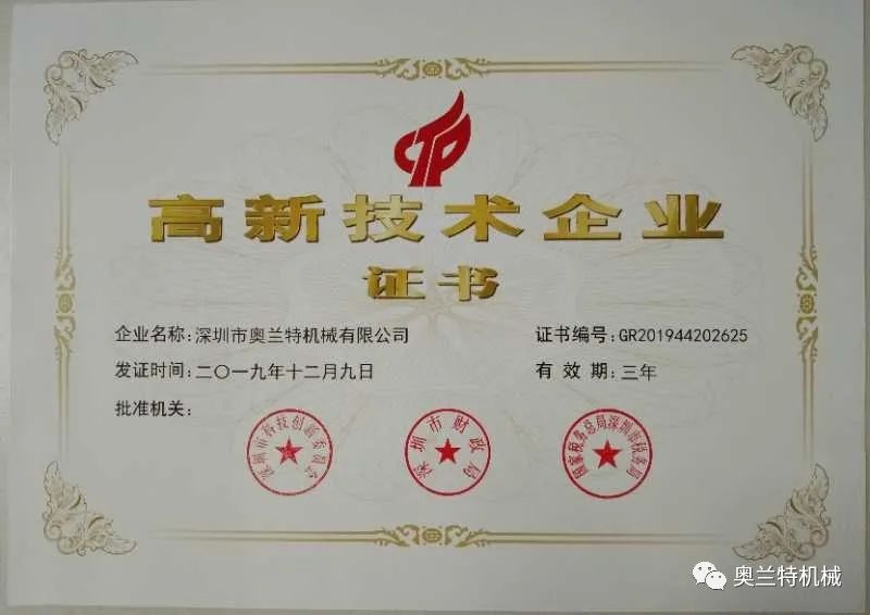 喜訊!深圳市奧蘭特機械有限公司榮獲國家高新技術(shù)企業(yè)認(rèn)證