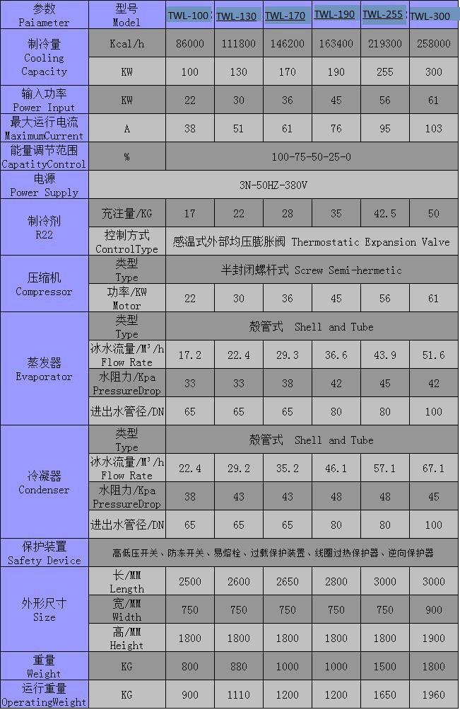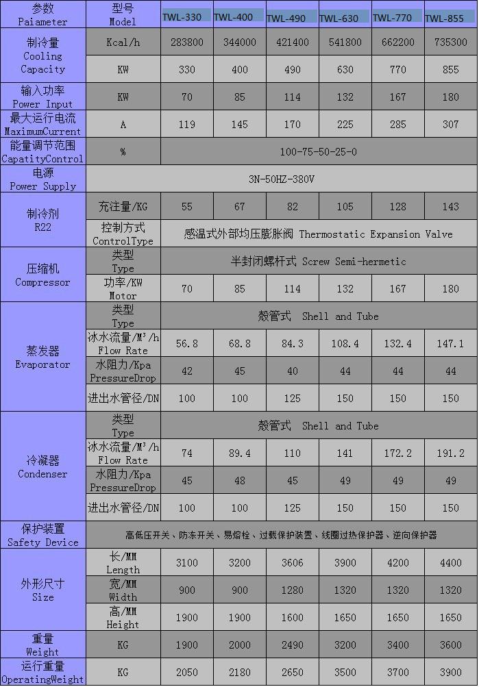 trolled ±2℃名義制冷量是依據(jù)冰水入口溫度12℃,出口溫度7℃,環(huán)境溫度35℃得出。